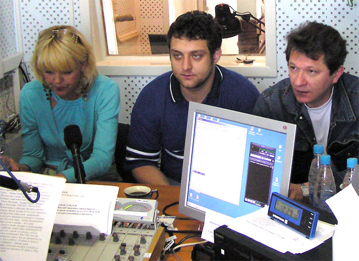 (20.06.2005) В гостях у радио «Голос Ангары» побывали известные актеры – Юлия Меньшова, Михаил Полицеймако и Андрей Ильин. Они приехали в Братск со спектаклем «Бестолочь».