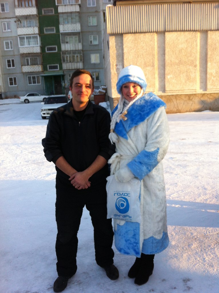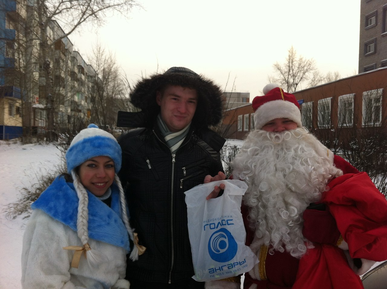 Начались традиционные «Новогодние выходки»! С сегодняшнего дня и до 31 декабря наши радийные Дед Мороз (он же Антон Сафорнов) и Снегурочка (ее имя мы держим в секрете) будут дарить подарки прямо на улицах Братска. Новогодние подарки сегодня получили первые участники проекта, так случилось, что наших сказочных персонажей расположившихся в районе гостиницы «Тайга», нашли буквально через пять минут после объявления пароля в эфире. К дедушке Морозу почти одновременно подошли пять человек, однако чуть быстрее остальных была девушка по имени Наталья, она то и унесла с собой подарки, от наших партнеров по проекту: рекламного Агентства «Апельсин», магазина «Биззаро» и цветочного салона «Флора Декор». Остальным достались сладкие подарки. Кому еще подарки от Деда Мороза? Налетай!